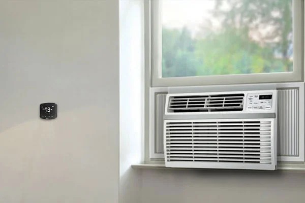 A window AC is a single, compact unit that fits directly into a window or a wall opening. All components – compressor, condenser, evaporator, fan, and controls – are housed in one box: